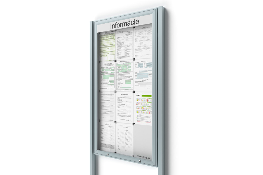 Uzamykatelná informační vitrína 12bxA4 UP50 s nápisem a sloupky