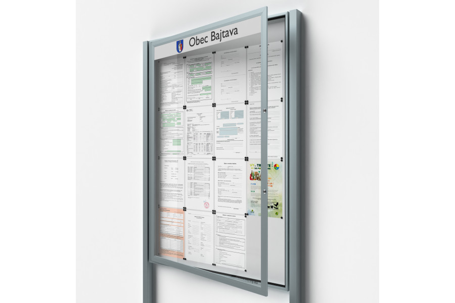 Uzamykatelná informační vitrína 16xA4 SIDE50 s nápisem a sloupky