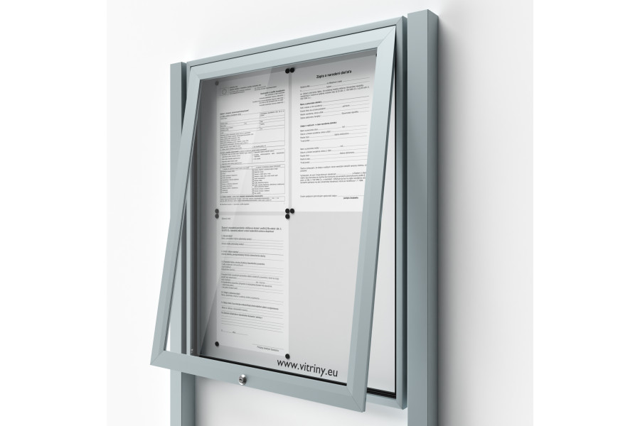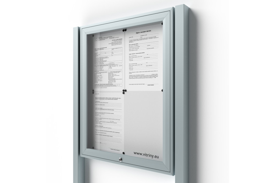 Dokumenty vložené do vitríny jsou zajištěny uzamykatelnými dvířky.