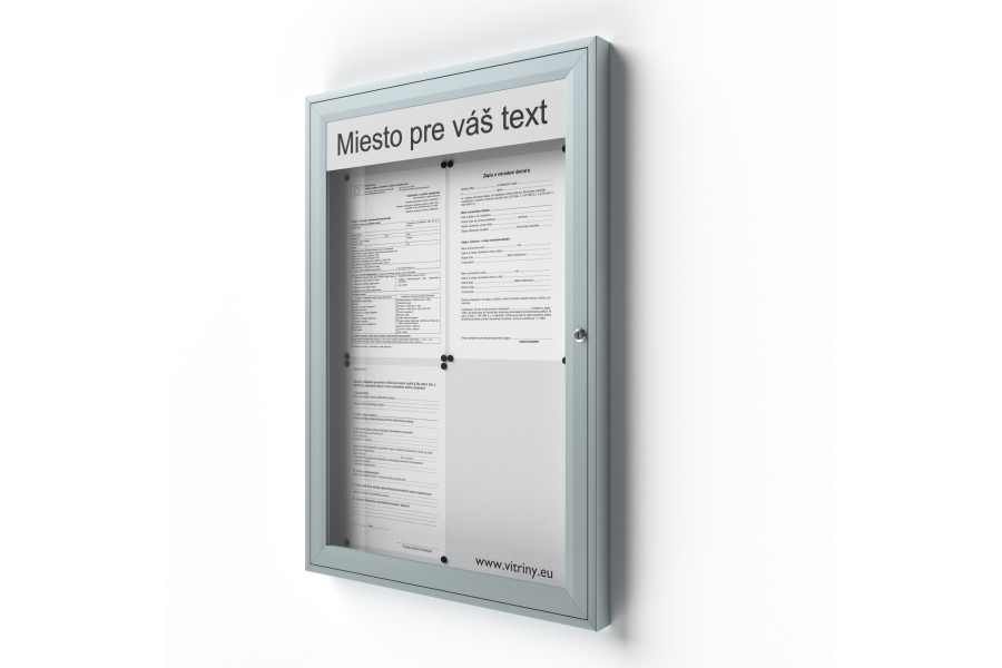 Dokumenty vložené do vitríny jsou zajištěny uzamykatelnými dvířky.