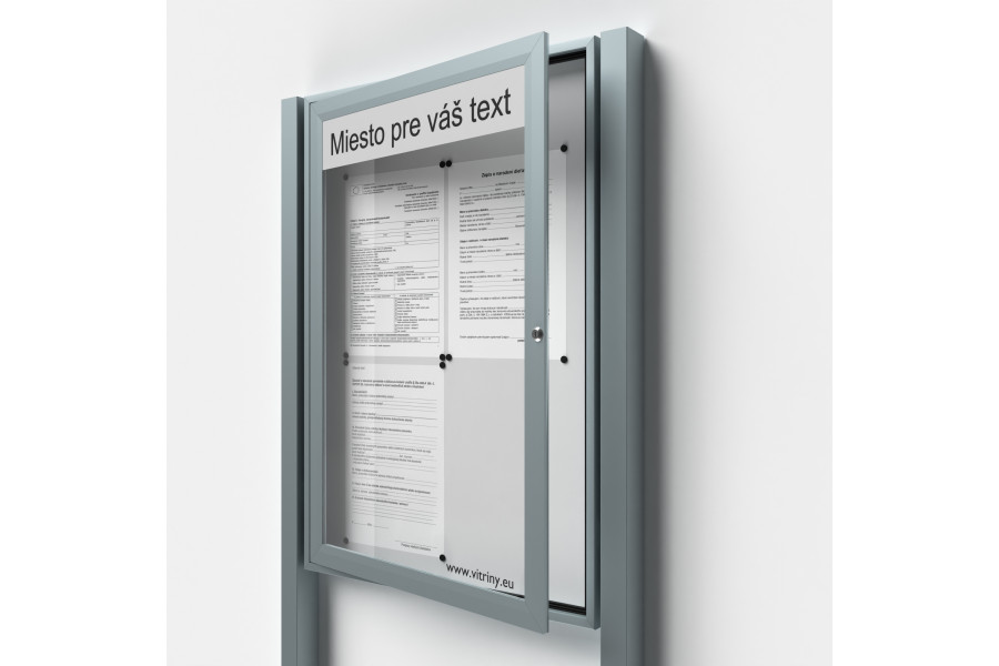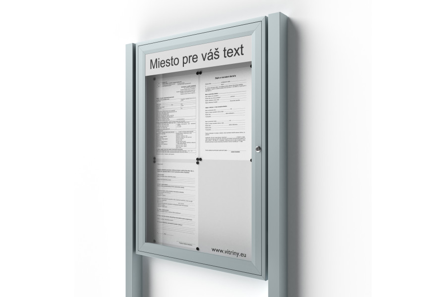 Uzamykatelná informační vitrína 4xA4 SIDE50 s nápisem a sloupky