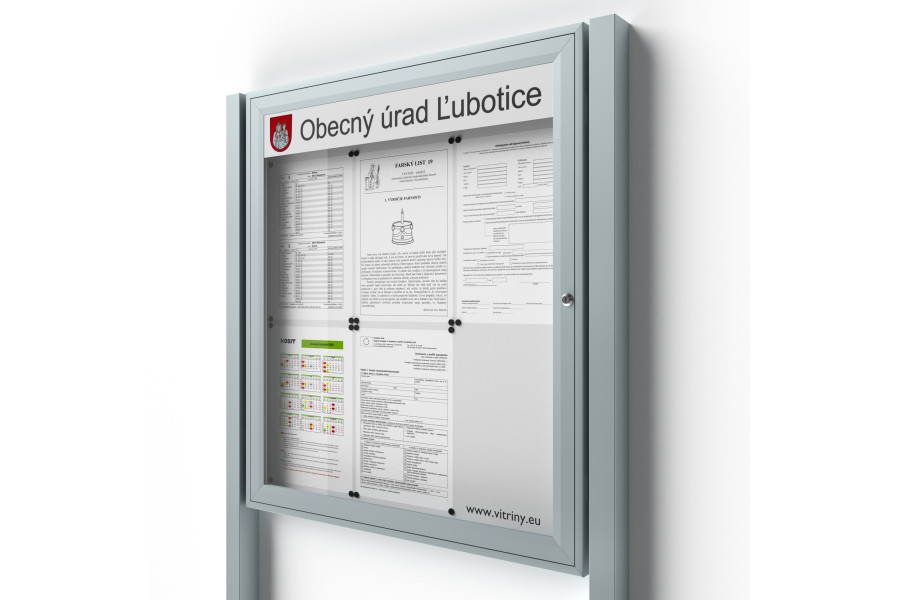 Uzamykatelná informační vitrína 6xA4 SIDE50 s nápisem a sloupky