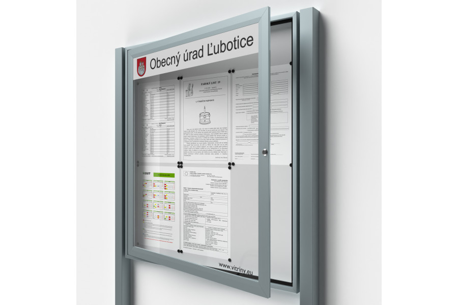 Dokumenty vložené do vitríny jsou zajištěny uzamykatelnými dvířky.