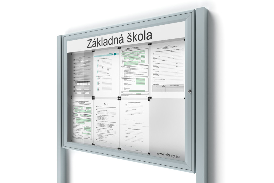 Uzamykatelná informační vitrína 8xA4 SIDE50 s nápisem a sloupky