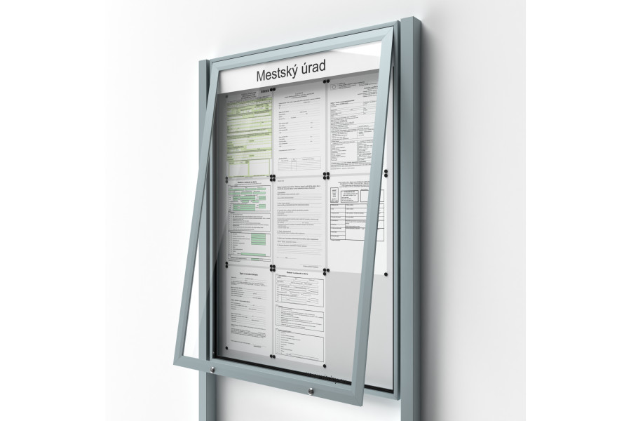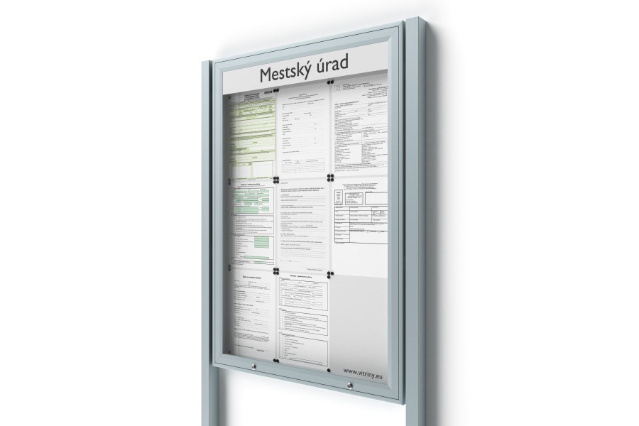 Dokumenty vložené do vitríny jsou zajištěny uzamykatelnými dvířky.