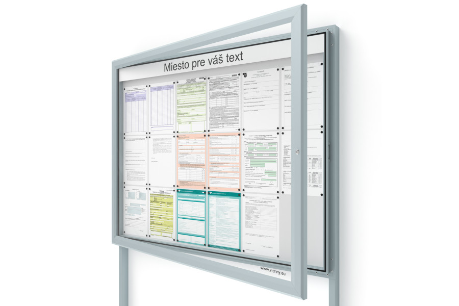 Dokumenty vložené do vitríny jsou zajištěny uzamykatelnými dvířky.