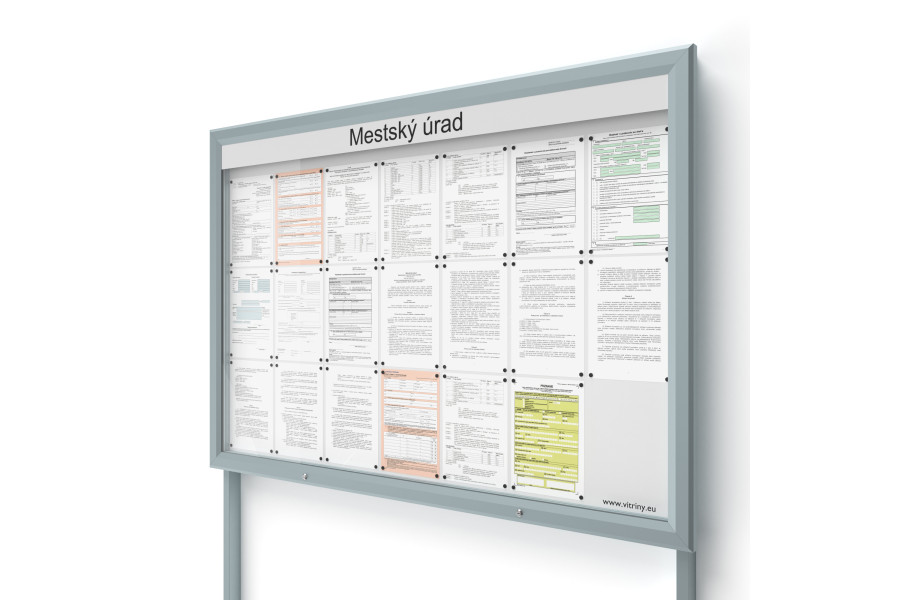 Venkovní informační vitrína 21xA4 UP60 s nápisem a sloupky
