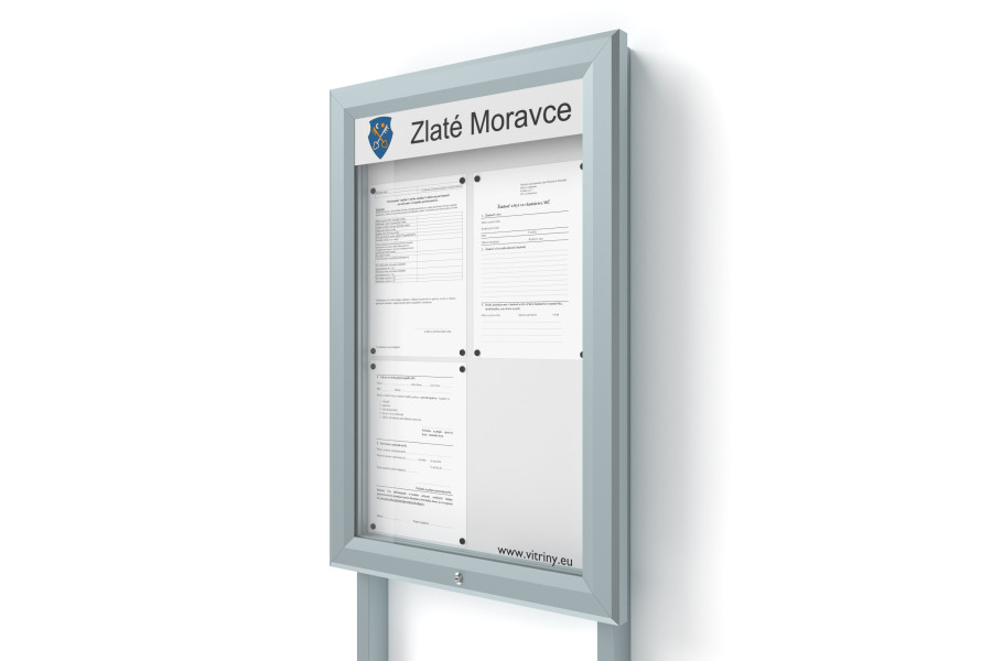 Dokumenty vložené do vitríny jsou zajištěny uzamykatelnými dvířky.