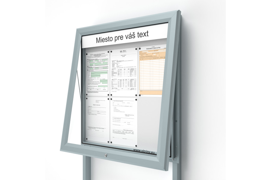 Dokumenty vložené do vitríny jsou zajištěny uzamykatelnými dvířky.