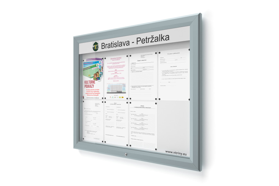 Dokumenty vložené do vitríny jsou zajištěny uzamykatelnými dvířky.