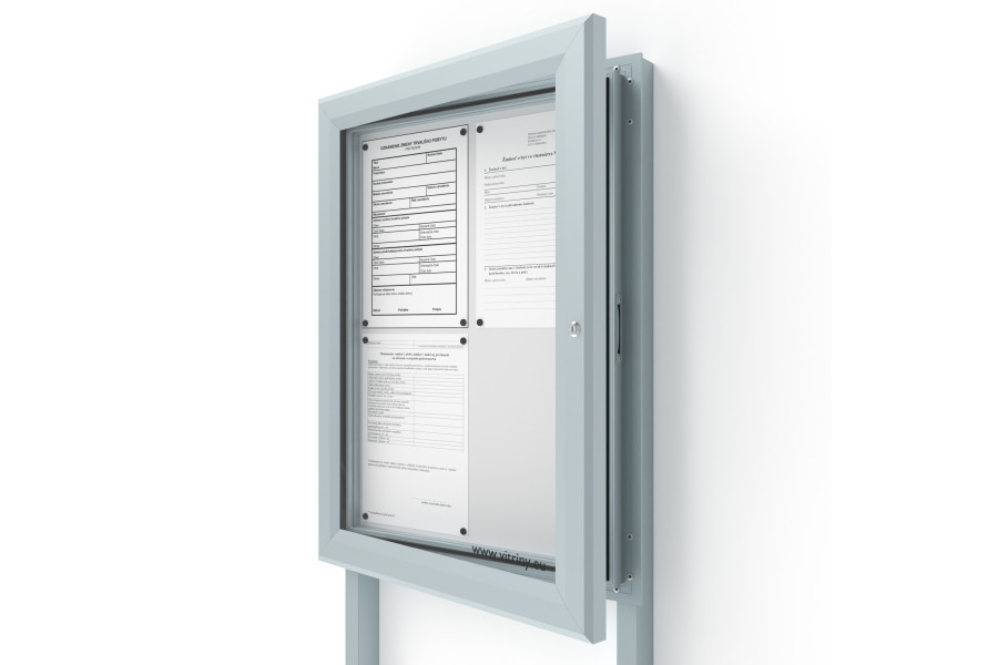 Dokumenty vložené do vitríny jsou zajištěny uzamykatelnými dvířky.